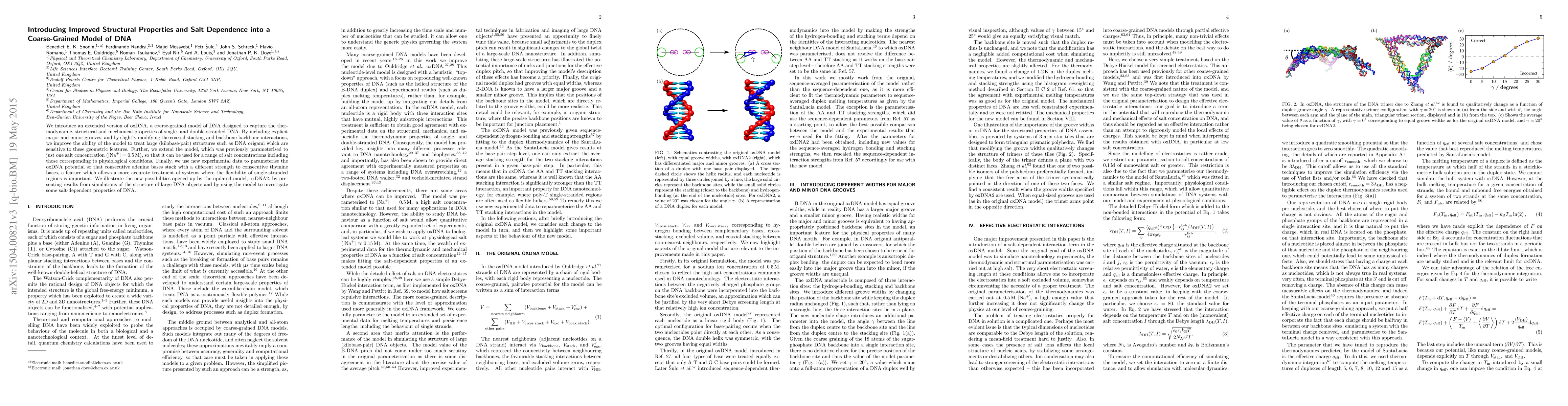 This paper presents an improved version of the oxDNA coarse-grained model, oxDNA2, which better captures the structural and thermodynamic properties of DNA, including major and minor grooves, and can now simulate DNA at various salt concentrations, enhancing its applicability to physiological conditions. The model also accounts for differences in stacking strength between adenine and thymine bases, improving simulations of flexible single-stranded regions.