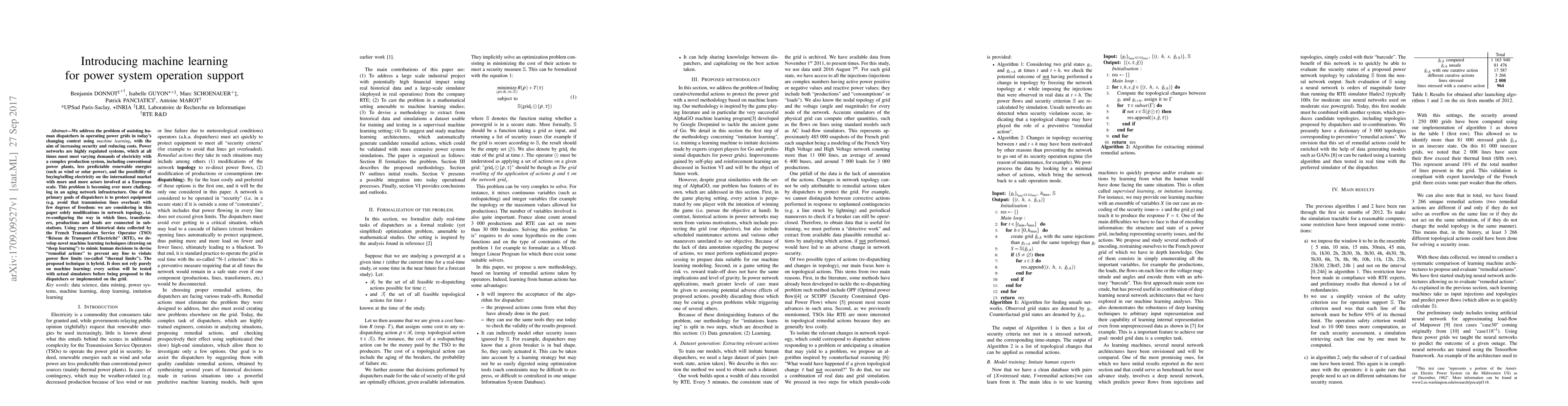 This paper introduces a machine learning approach to assist power grid operators in increasing security and reducing costs by predicting line overheating and proposing remedial actions. It uses historical data from the French TSO and combines machine learning with actual simulator testing to optimize network topology.