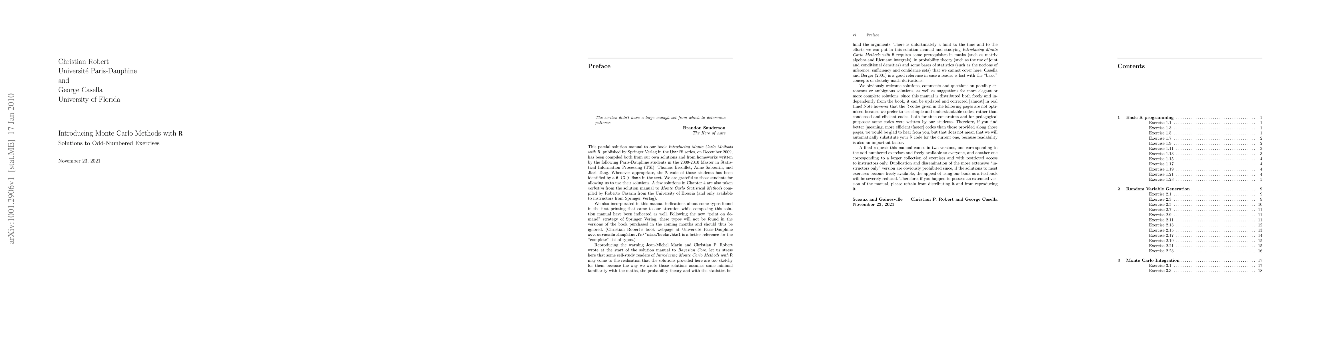 This is the solution manual to the odd-numbered exercises in our book "Introducing Monte Carlo Methods with R", published by Springer Verlag on December 10, 2009, and made freely available to everyone.