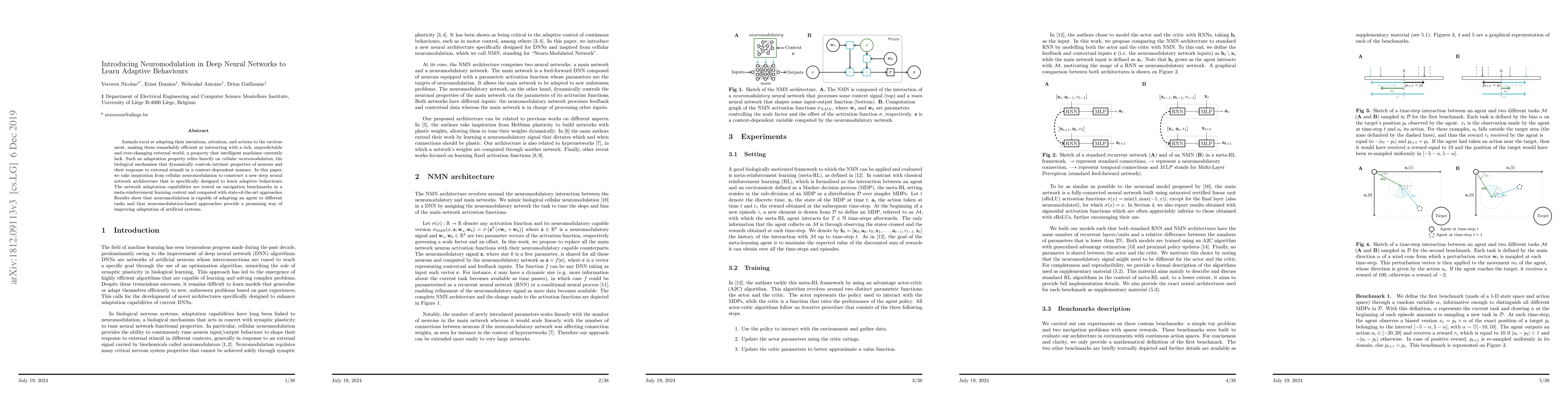 This paper introduces a novel deep neural network architecture inspired by cellular neuromodulation to enable adaptive behaviours in artificial agents. Experimental results demonstrate the network's superior adaptability across various navigation tasks compared to current state-of-the-art methods.