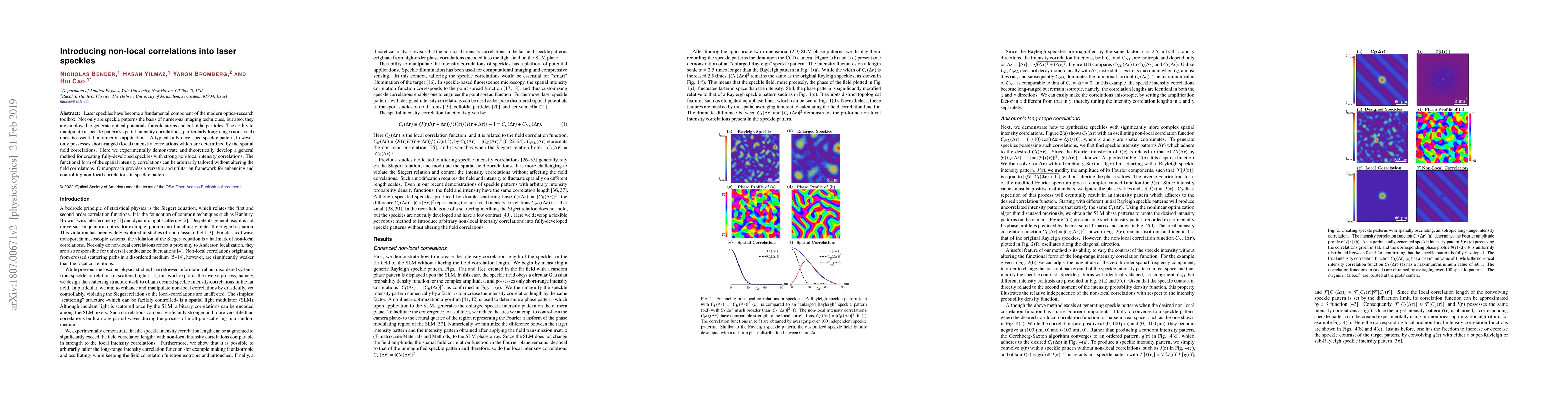 This paper introduces a method for generating speckles with strong non-local intensity correlations, enhancing their utility in imaging and optical trapping. The technique allows for arbitrary tailoring of spatial intensity correlations without affecting the underlying field correlations.