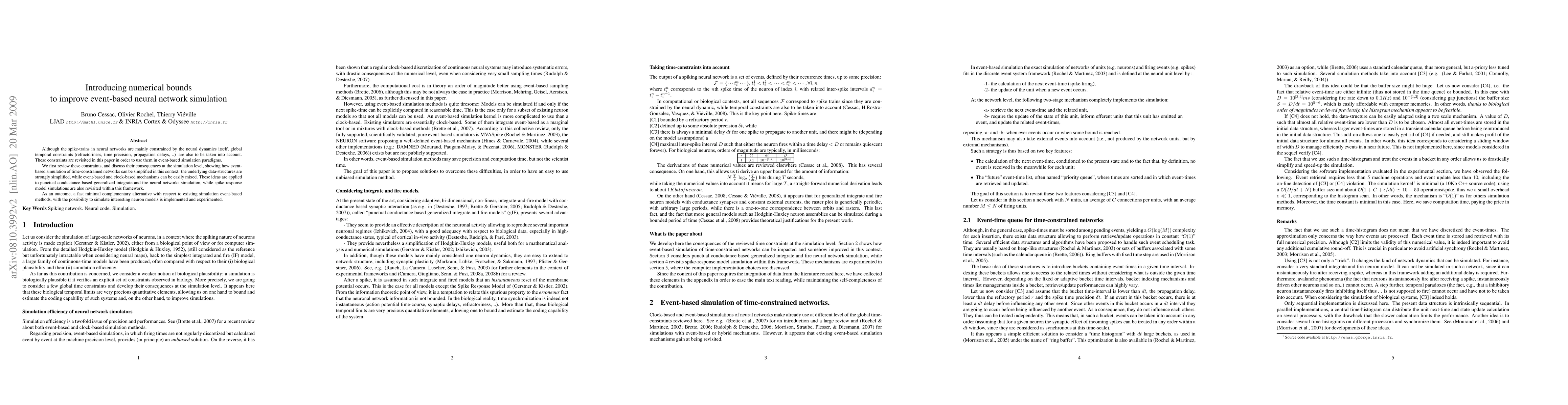 This paper introduces numerical bounds to enhance event-based neural network simulations by considering global temporal constraints like refractoriness and propagation delays. The proposed method simplifies data structures and allows for the integration of event-based and clock-based mechanisms, leading to a fast, minimal alternative for simulating conductance-based neural networks.