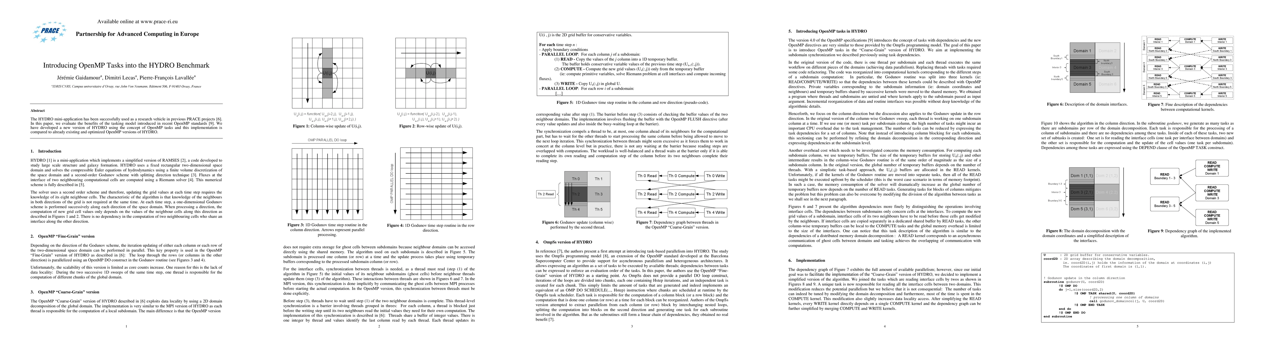 The HYDRO mini-application has been successfully used as a research vehicle in previous PRACE projects [6]. In this paper, we evaluate the benefits of the tasking model introduced in recent OpenMP standards [9]. We have developed a new version of HYDRO using the concept of OpenMP tasks and this implementation is compared to already existing and optimized OpenMP versions of HYDRO.