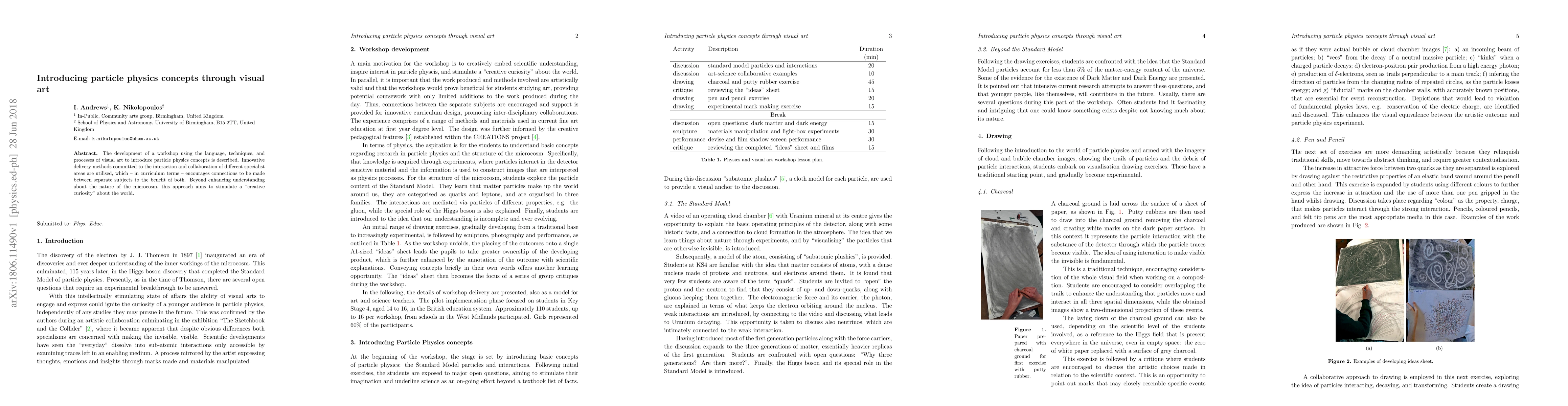 A workshop using visual art introduces particle physics concepts to students, promoting connections between subjects and fostering creative curiosity about the world. This innovative approach enhances understanding of the microcosm and benefits both students and teachers.