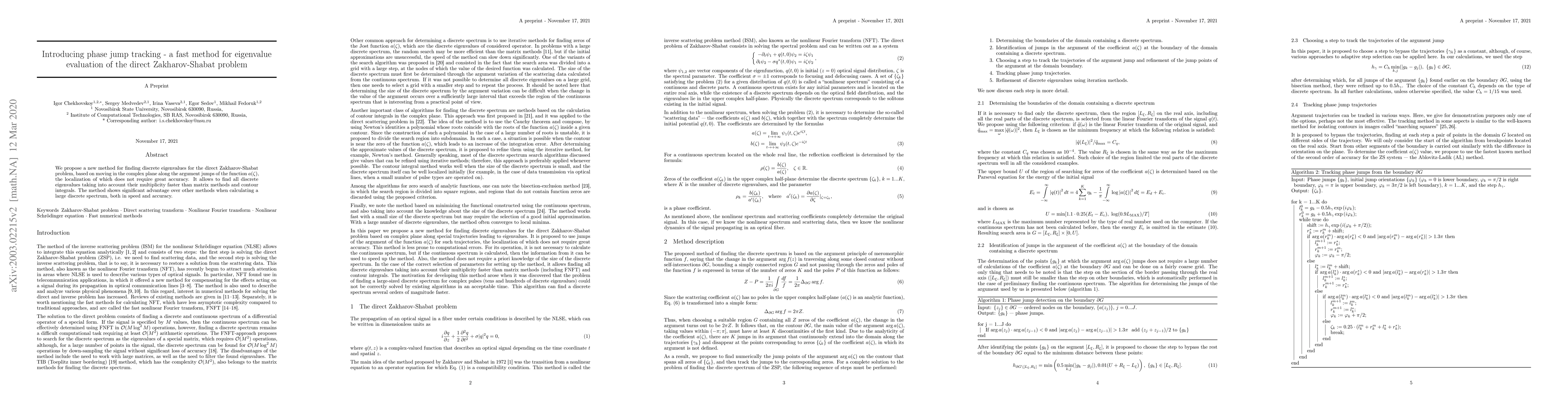 The paper introduces phase jump tracking, a novel method for efficiently evaluating discrete eigenvalues of the direct Zakharov-Shabat problem by navigating complex plane argument jumps of the function $a(\zeta)$, offering faster and more accurate results compared to traditional matrix methods and contour integrals.