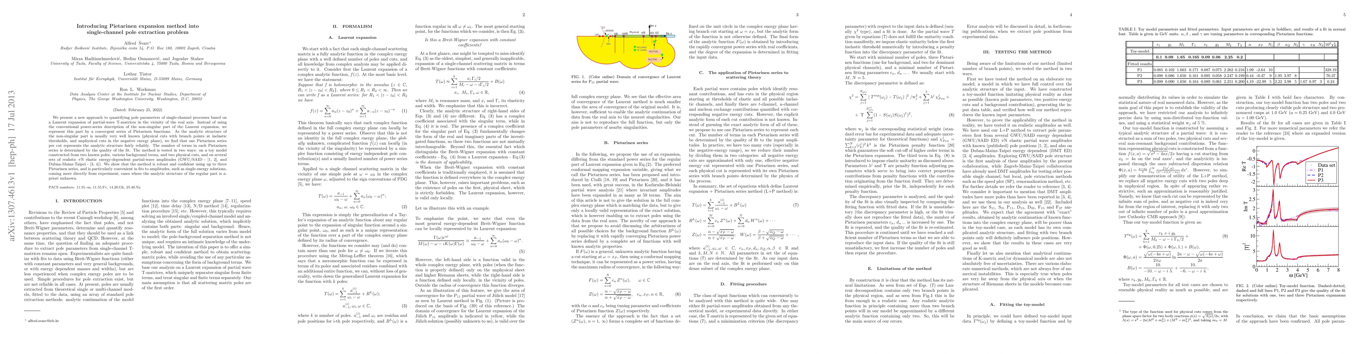A new method for extracting pole parameters in single-channel processes uses a Laurent expansion with Pietarinen functions to represent the non-singular part of partial-wave T-matrices, providing a robust and confident solution to the pole extraction problem.