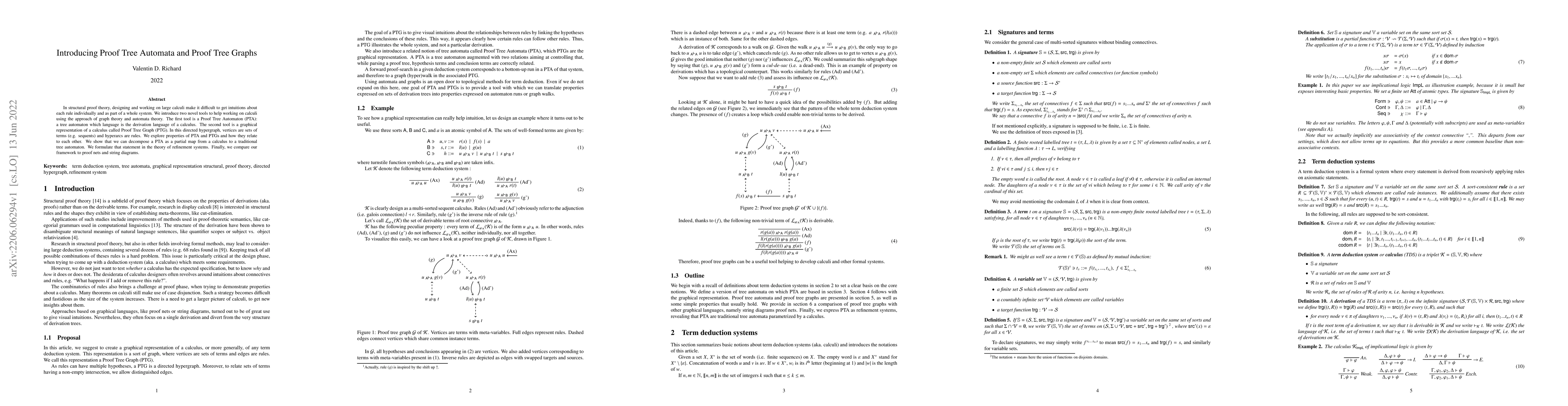In structural proof theory, designing and working on large calculi make it difficult to get intuitions about each rule individually and as part of a whole system. We introduce two novel tools to help working on calculi using the approach of graph theory and automata theory. The first tool is a Proof Tree Automaton (PTA): a tree automaton which language is the derivation language of a calculus. The second tool is a graphical representation of a calculus called Proof Tree Graph (PTG). In this directed hypergraph, vertices are sets of terms (e.g. sequents) and hyperarcs are rules. We explore properties of PTA and PTGs and how they relate to each other. We show that we can decompose a PTA as a partial map from a calculus to a traditional tree automaton. We formulate that statement in the theory of refinement systems. Finally, we compare our framework to proof nets and string diagrams.