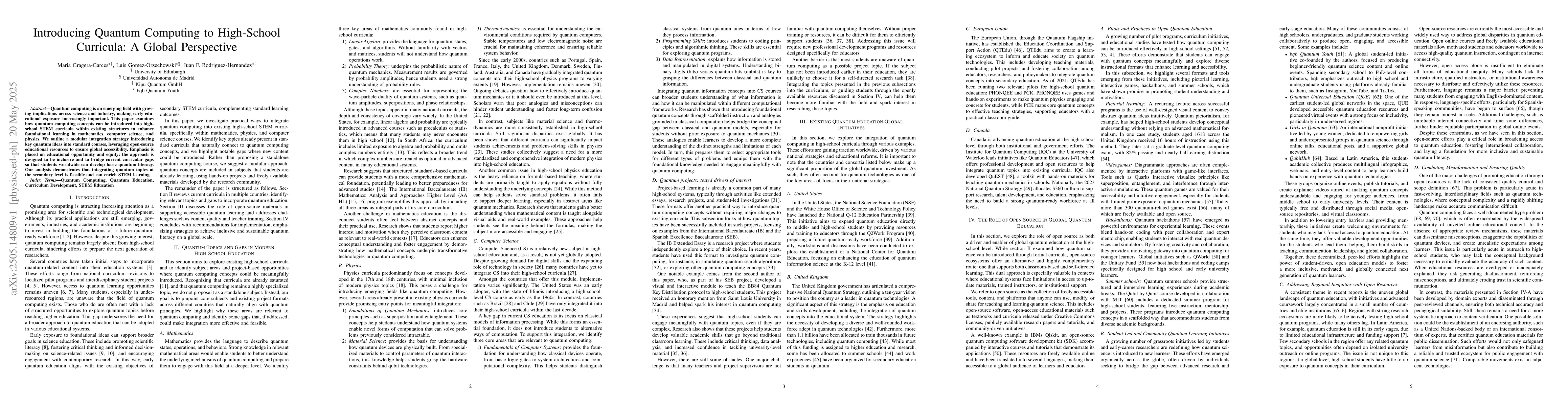 The paper presents a novel, modular approach to integrating quantum computing concepts into existing high-school STEM curricula using open-source resources.