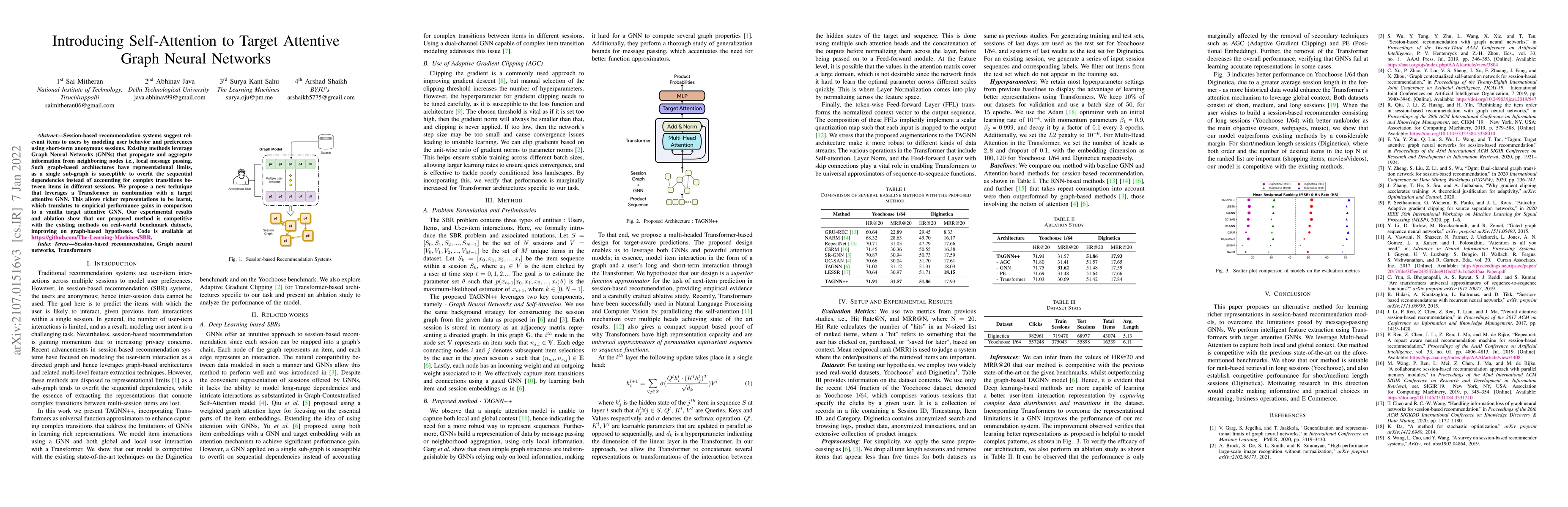 This paper introduces a novel method combining self-attention from Transformers with target attentive Graph Neural Networks (GNNs) to enhance session-based recommendation systems. The proposed approach outperforms traditional GNNs by capturing complex item transitions across different sessions, achieving better performance on benchmark datasets.