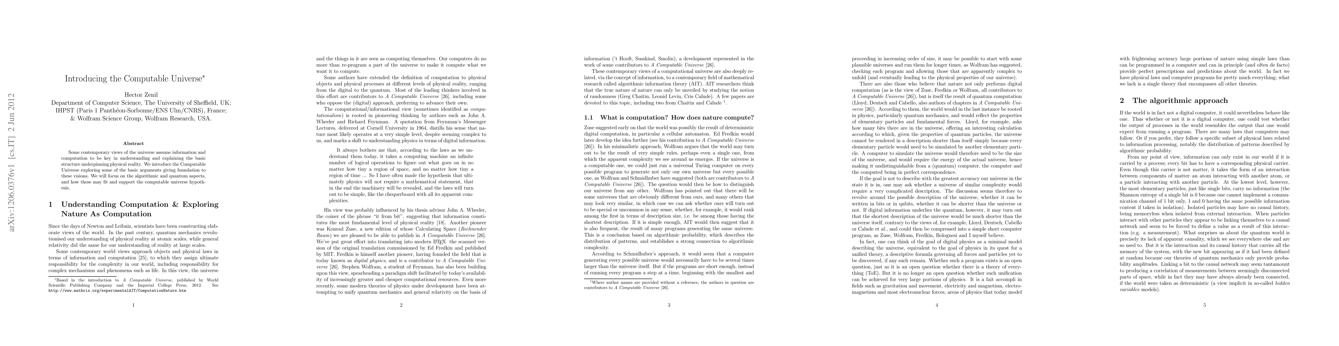 This paper introduces the Computable Universe hypothesis, arguing that information and computation are fundamental to understanding physical reality. It explores algorithmic and quantum aspects to support this vision.