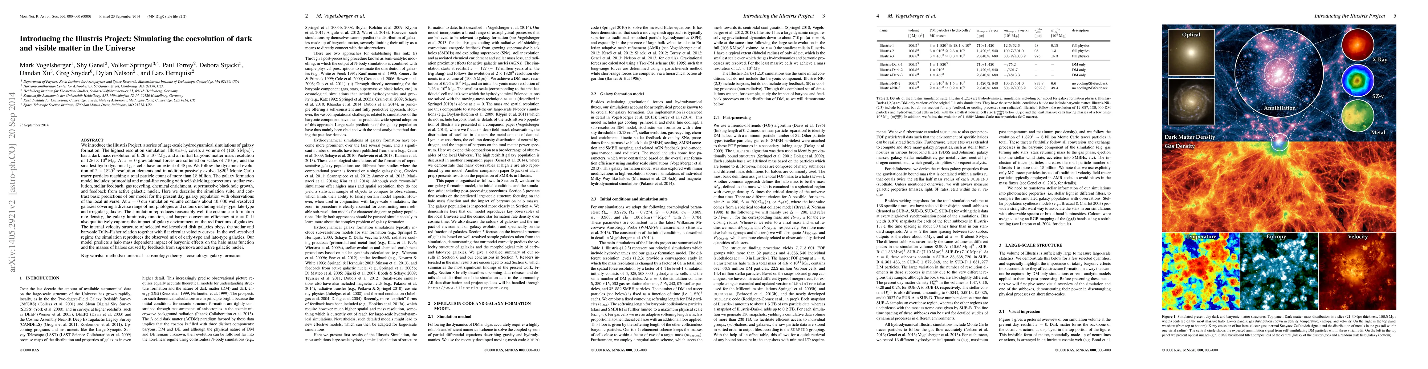 The Illustris Project presents large-scale hydrodynamical simulations of galaxy formation, capturing the coevolution of dark and visible matter. The simulations reproduce key observational features like the cosmic star formation rate and galaxy luminosity function, while also predicting the effects of baryonic feedback on galaxy and halo properties.