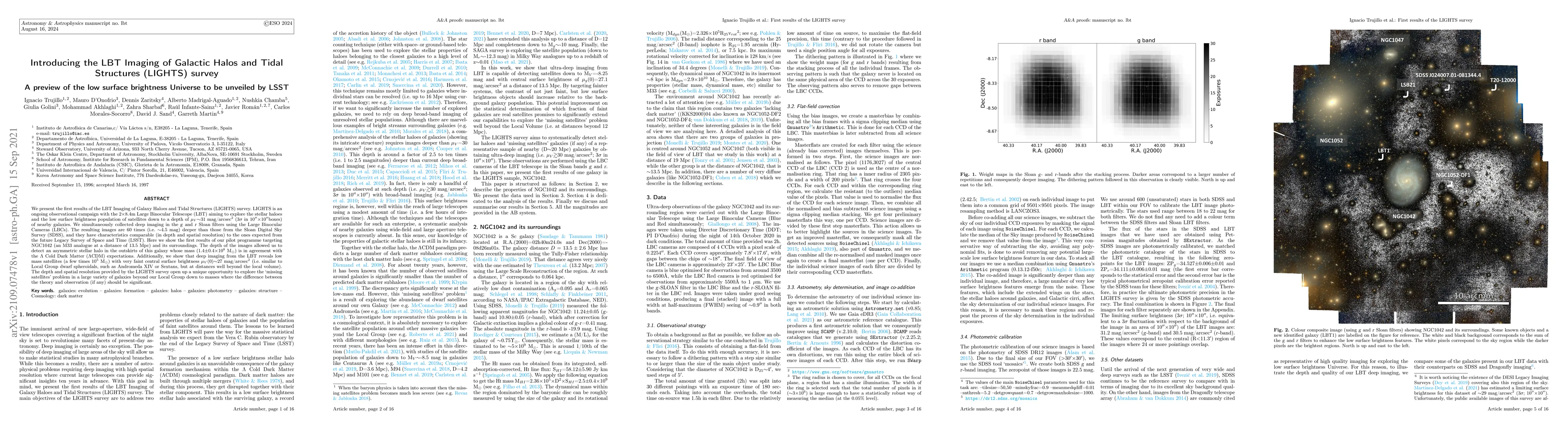 The LIGHTS survey, conducted with the LBT, reveals deep images of galaxy haloes and low surface brightness satellites, detecting an asymmetric stellar halo around NGC1042 and faint low-mass satellites. These images, significantly deeper than SDSS, provide insights into the "missing satellites" problem.