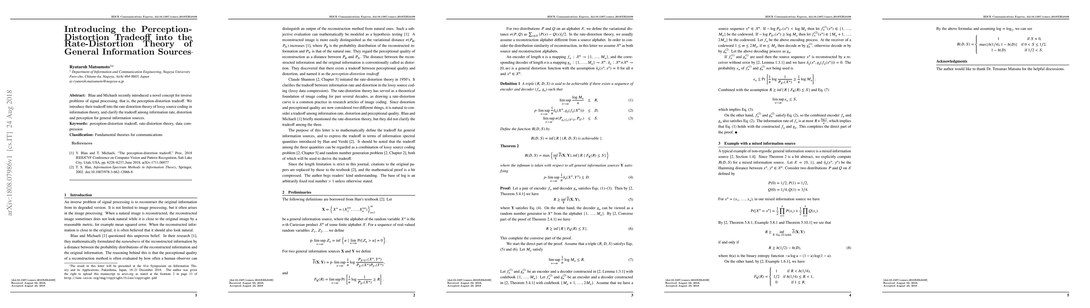 This paper integrates the perception-distortion tradeoff from inverse signal processing problems into rate-distortion theory, clarifying the relationship between information rate, distortion, and perceptual quality for general information sources. The study aims to enhance lossy source coding by balancing these factors.