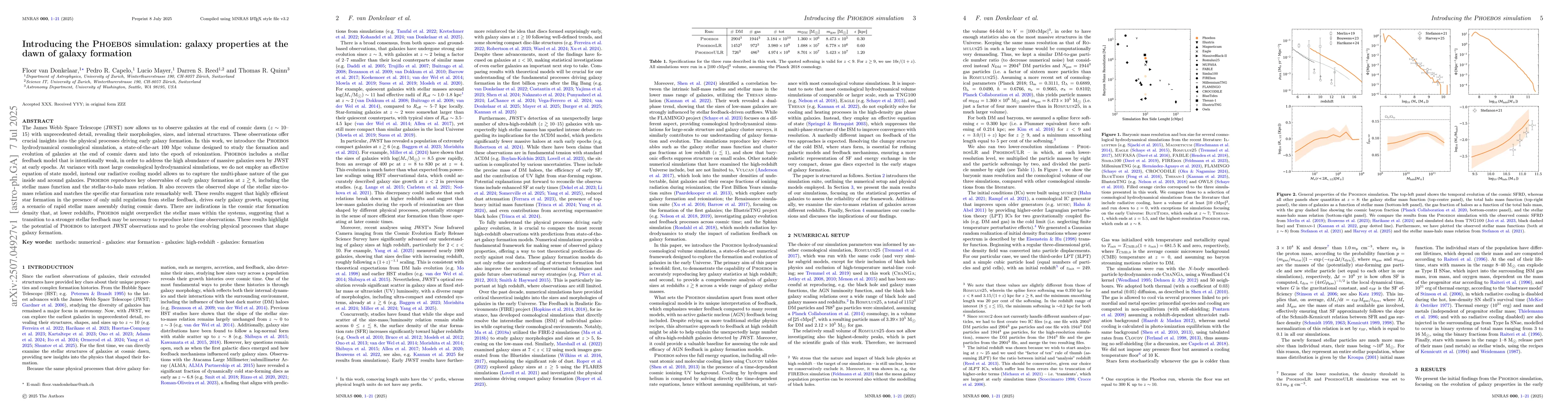 The James Webb Space Telescope (JWST) now allows us to observe galaxies at the end of cosmic dawn ($z \sim 10-15$) with unprecedented detail, revealing their morphologies, sizes, and internal structures. These observations offer crucial insights into the physical processes driving early galaxy formation. In this work, we introduce the Phoebos hydrodynamical cosmological simulation, a state-of-the-art 100 Mpc volume designed to study the formation and evolution of galaxies at the end of cosmic dawn and into the epoch of reionization. Phoebos includes a stellar feedback model that is intentionally weak, in order to address the high abundance of massive galaxies seen by JWST at early epochs. At variance with most large cosmological hydrodynamical simulations, we do not employ an effective equation of state model, instead our radiative cooling model allows us to capture the multi-phase nature of the gas inside and around galaxies. Phoebos reproduces key observables of early galaxy formation at $z \gtrsim 8$, including the stellar mass function and the stellar-to-halo mass relation. It also recovers the observed slope of the stellar size-to-mass relation and matches the specific star formation rate remarkably well. These results suggest that highly efficient star formation in the presence of only mild regulation from stellar feedback, drives early galaxy growth, supporting a scenario of rapid stellar mass assembly during cosmic dawn. There are indications in the cosmic star formation density that, at lower redshifts, Phoebos might overpredict the stellar mass within the systems, suggesting that a transition to a stronger stellar feedback may be necessary to reproduce later-time observations. These results highlight the potential of Phoebos to interpret JWST observations and to probe the evolving physical processes that shape galaxy formation.