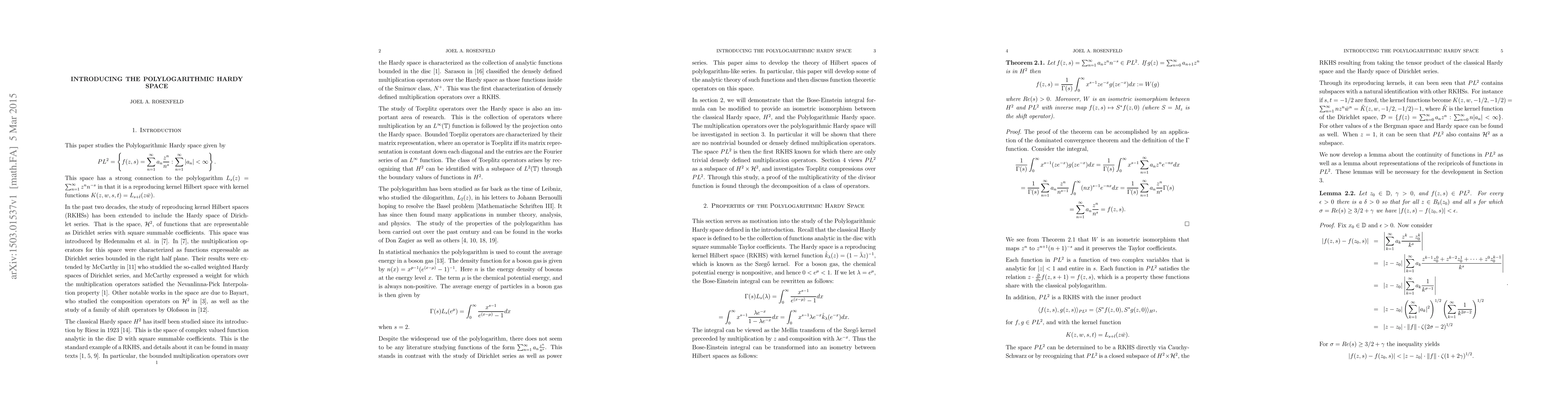 In this paper we investigate the reproducing kernel Hilbert space where the polylogarithm appears as kernel functions. This investigation begins with the properties of functions in this space, and here a connection to the classical Hardy space is shown through the Bose-Einstein integral equation. Next we consider function theoretic operators over the polylogarithmic Hardy space, such as multiplication and Toeplitz operators. It is determined that there are only trivial densely defined multiplication operators (and therefore only trivial bounded multipliers) over this space, which makes this space the first for which this has been found to be true. In the case of Toeplitz operators, a connection between a certain subset of these operators and the number theoretic divisor function is found. Finally, the paper concludes with an operator theoretic proof of the divisibility of the divisor function.