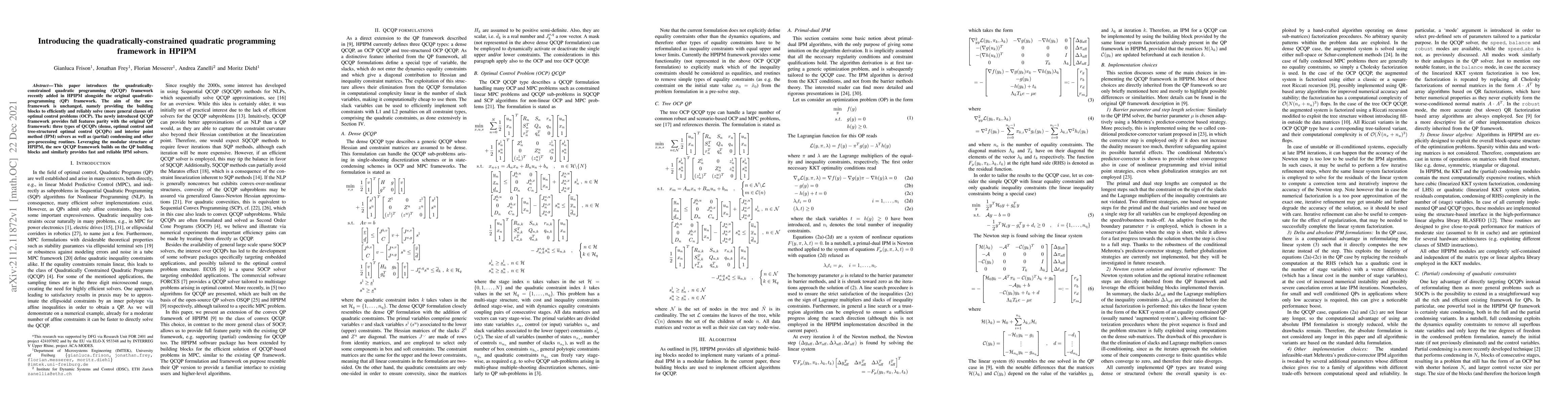 This paper introduces the quadratically-constrained quadratic programming (QCQP) framework recently added in HPIPM alongside the original quadratic-programming (QP) framework. The aim of the new framework is unchanged, namely providing the building blocks to efficiently and reliably solve (more general classes of) optimal control problems (OCP). The newly introduced QCQP framework provides full features parity with the original QP framework: three types of QCQPs (dense, optimal control and tree-structured optimal control QCQPs) and interior point method (IPM) solvers as well as (partial) condensing and other pre-processing routines. Leveraging the modular structure of HPIPM, the new QCQP framework builds on the QP building blocks and similarly provides fast and reliable IPM solvers.