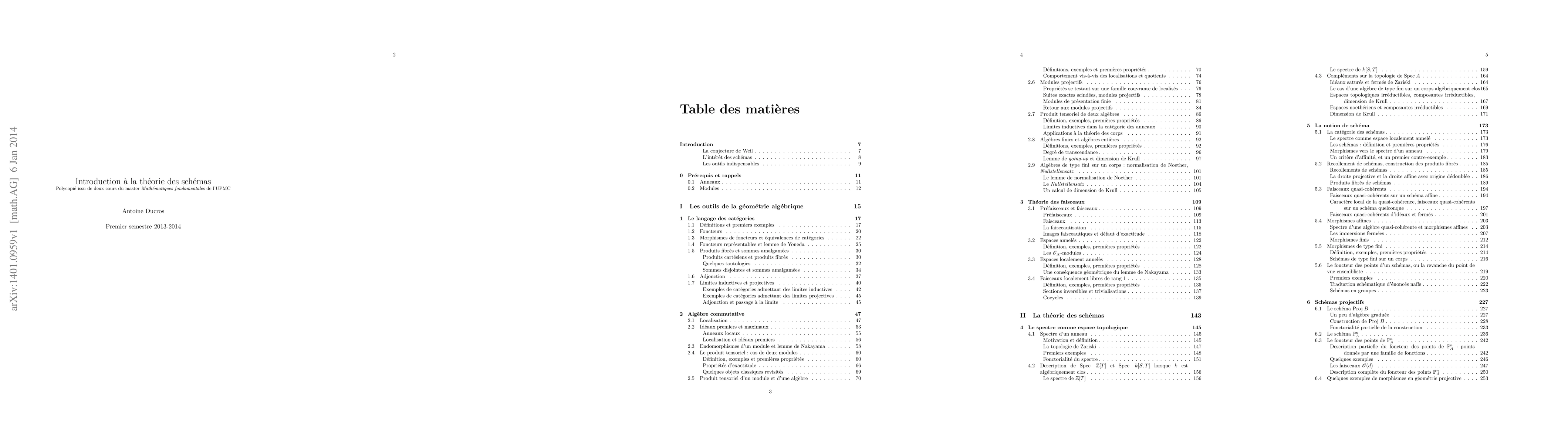 I have merged the lecture notes (in french) of two 24 hour courses I taught at the university Pierre-et-Marie Curie (Paris 6) during the first semester of the academic year 2013-2014. The first one was devoted to the general material that is needed for doing algebraic geometry (categories, commutative algebra, sheaves, locally ringed spaces), and the second one to the foundations of scheme theory.