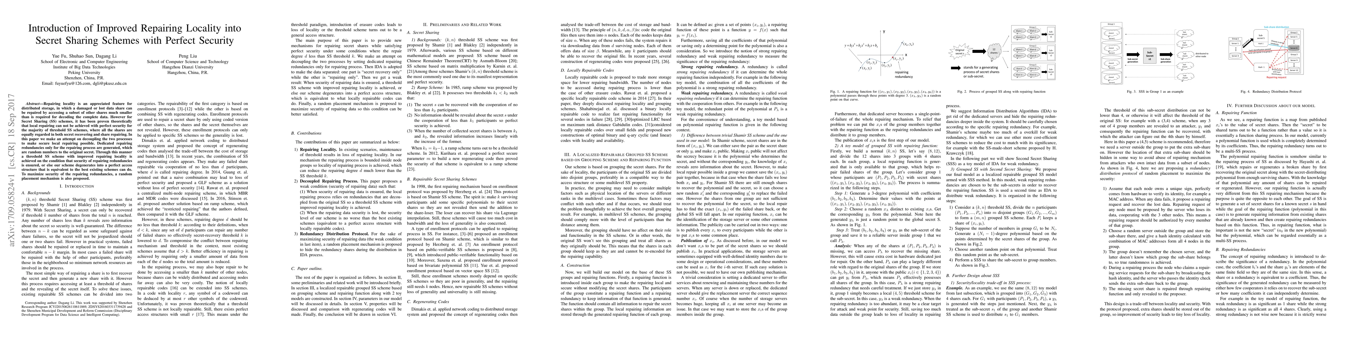 This paper introduces a novel Secret Sharing scheme that allows for improved local repairing without compromising perfect security. The authors propose generating dedicated repairing redundancies, ensuring their security through a random placement mechanism, thus decoupling the secret recovery and local repair processes.