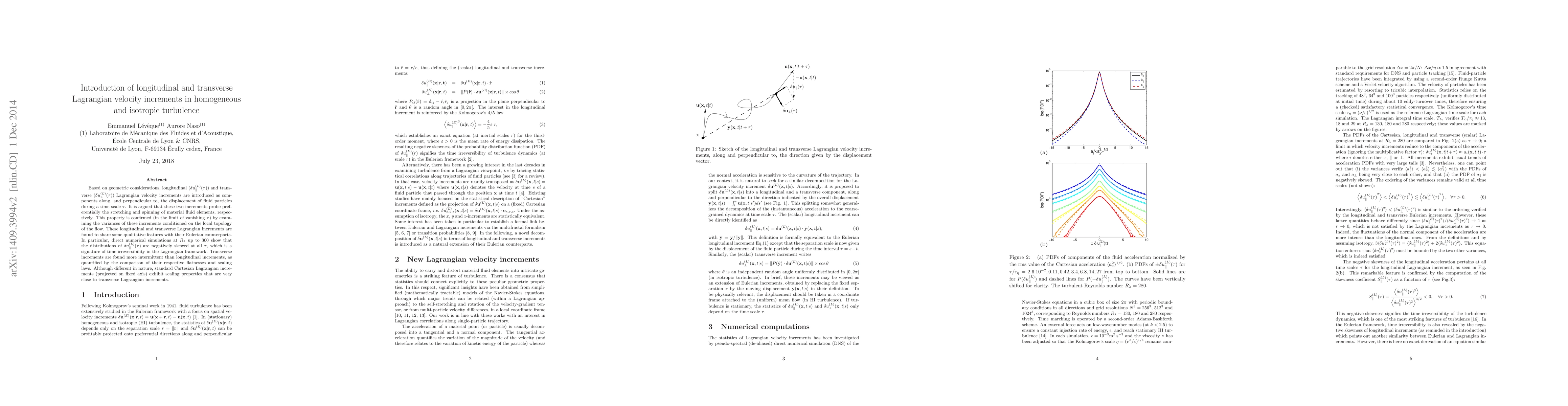 This paper introduces longitudinal and transverse Lagrangian velocity increments to analyze the stretching and spinning of fluid particles in turbulence. Direct numerical simulations reveal that longitudinal increments exhibit negative skewness, indicating turbulence's time irreversibility, while transverse increments show higher intermittency compared to longitudinal ones.