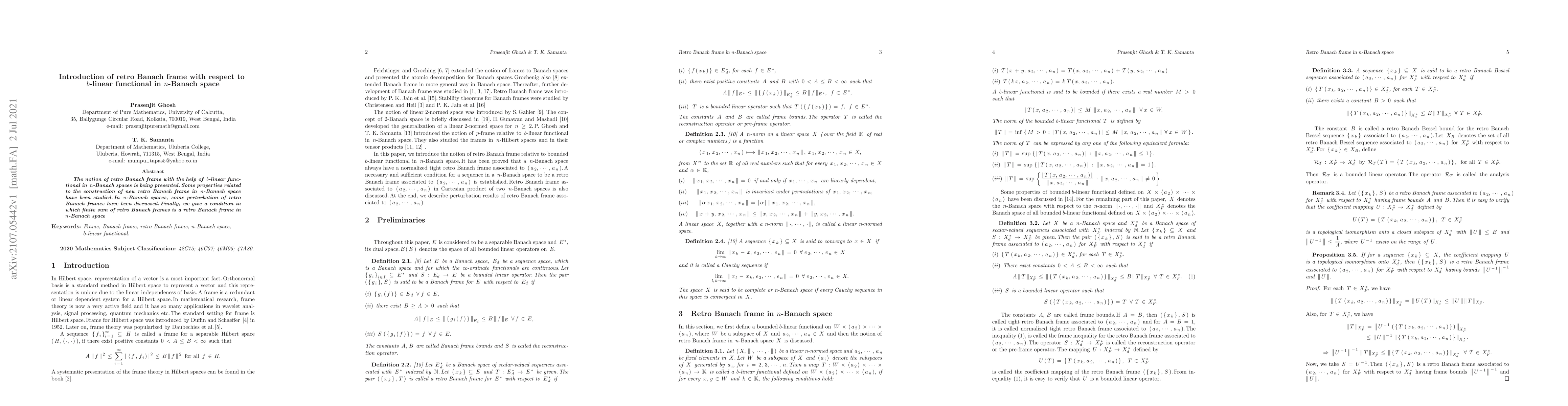 This paper introduces a new concept of retro Banach frame in n-Banach spaces using b-linear functional, exploring its properties and implications. It also provides conditions under which finite sums of these frames form a retro Banach frame.