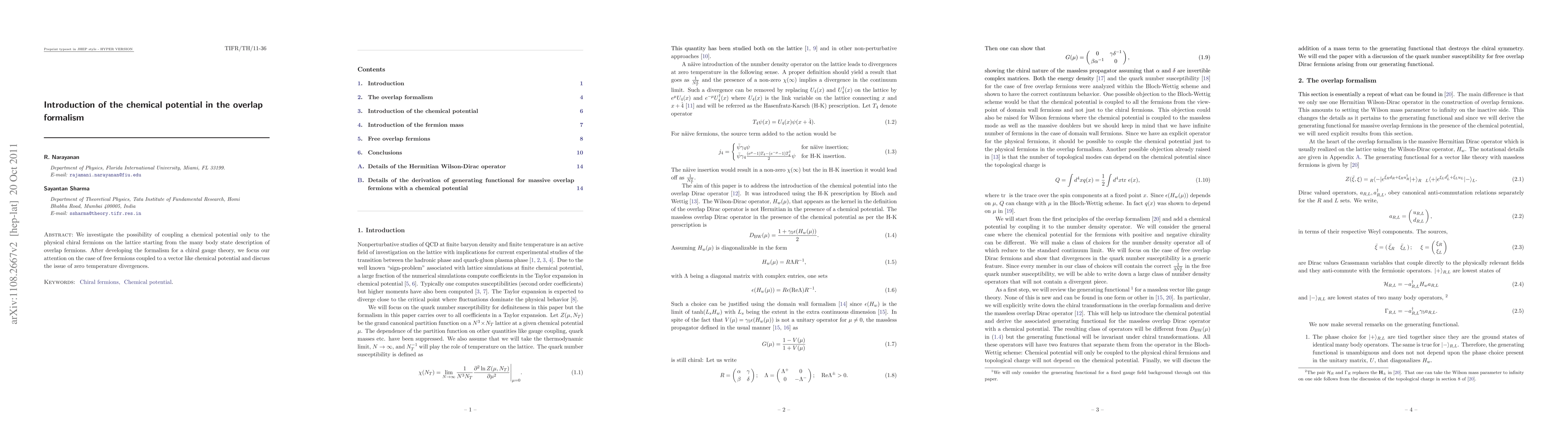 This paper introduces a formalism for coupling a chemical potential to physical chiral fermions in the overlap formalism on the lattice, focusing on free fermions and addressing zero-temperature divergences in the context of chiral gauge theory.