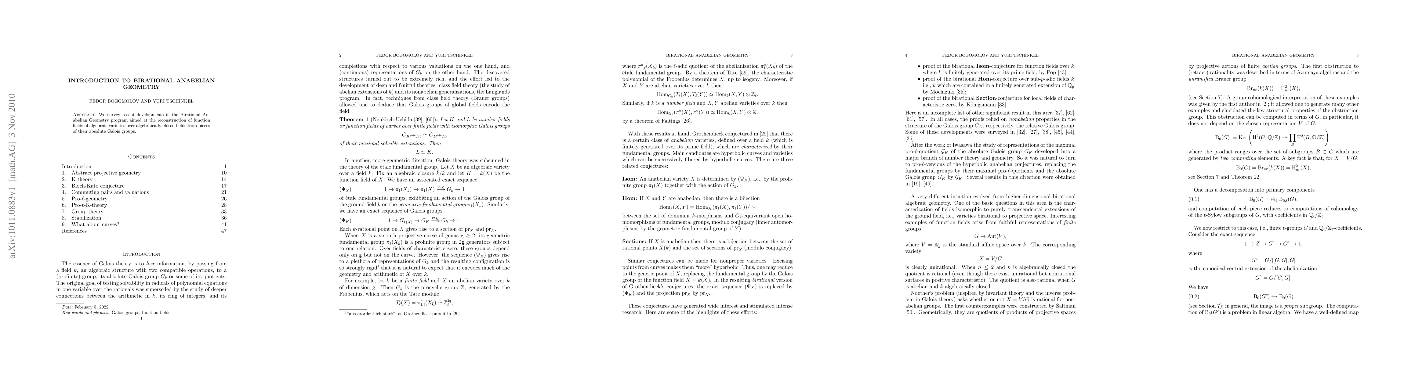 Summary: This paper surveys recent advancements in birational anabelian geometry, focusing on reconstructing function fields of algebraic varieties from information derived from their absolute Galois groups. The work highlights significant progress in understanding the deep connections between algebraic structures and geometric properties.