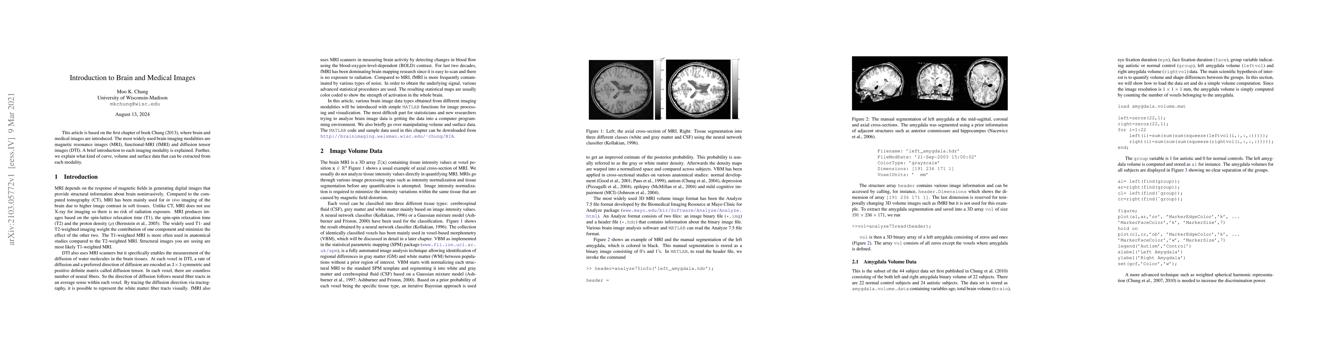 This article is based on the first chapter of book Chung (2013), where brain and medical images are introduced. The most widely used brain imaging modalities are magnetic resonance images (MRI), functional-MRI (fMRI) and diffusion tensor images (DTI). A brief introduction to each imaging modality is explained. Further, we explain what kind of curve, volume and surface data that can be extracted from each modality.