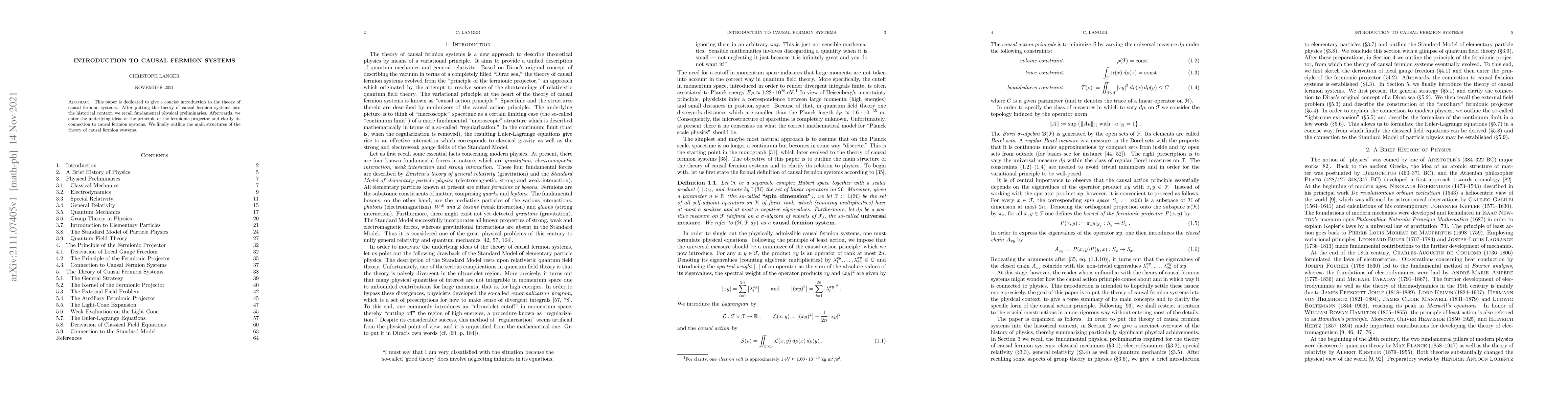 This paper provides an introduction to causal fermion systems, situating the theory within its historical context and reviewing fundamental physical principles. It explains the principle of the fermionic projector and its role in causal fermion systems, and outlines the main structures of the theory.