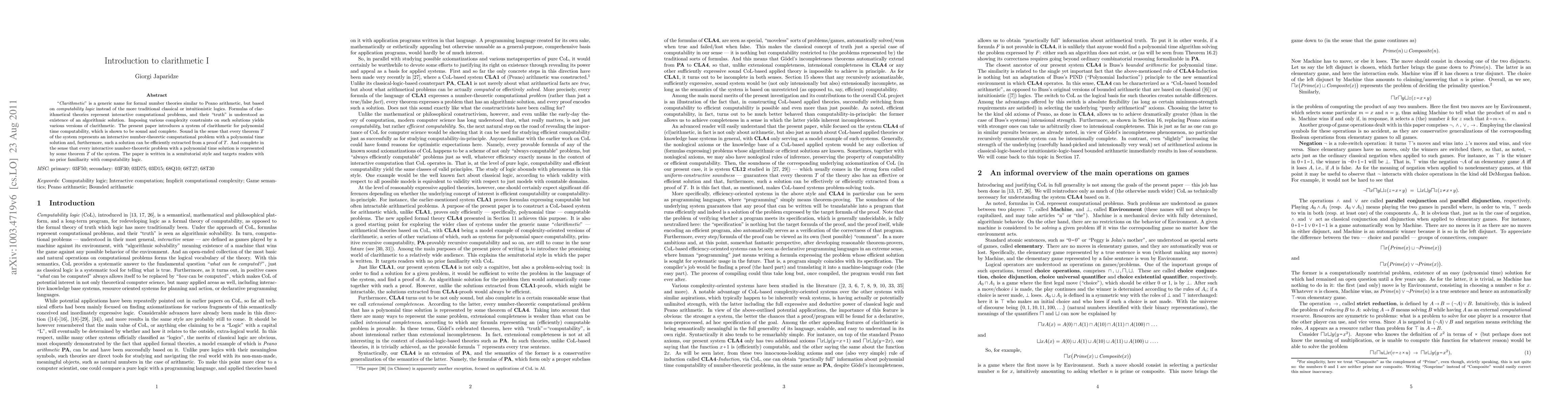 "Clarithmetic" is a generic name for formal number theories similar to Peano arithmetic, but based on computability logic (see http://www.cis.upenn.edu/~giorgi/cl.html) instead of the more traditional classical or intuitionistic logics. Formulas of clarithmetical theories represent interactive computational problems, and their "truth" is understood as existence of an algorithmic solution. Imposing various complexity constraints on such solutions yields various versions of clarithmetic. The present paper introduces a system of clarithmetic for polynomial time computability, which is shown to be sound and complete. Sound in the sense that every theorem T of the system represents an interactive number-theoretic computational problem with a polynomial time solution and, furthermore, such a solution can be efficiently extracted from a proof of T. And complete in the sense that every interactive number-theoretic problem with a polynomial time solution is represented by some theorem T of the system. The paper is written in a semitutorial style and targets readers with no prior familiarity with computability logic.