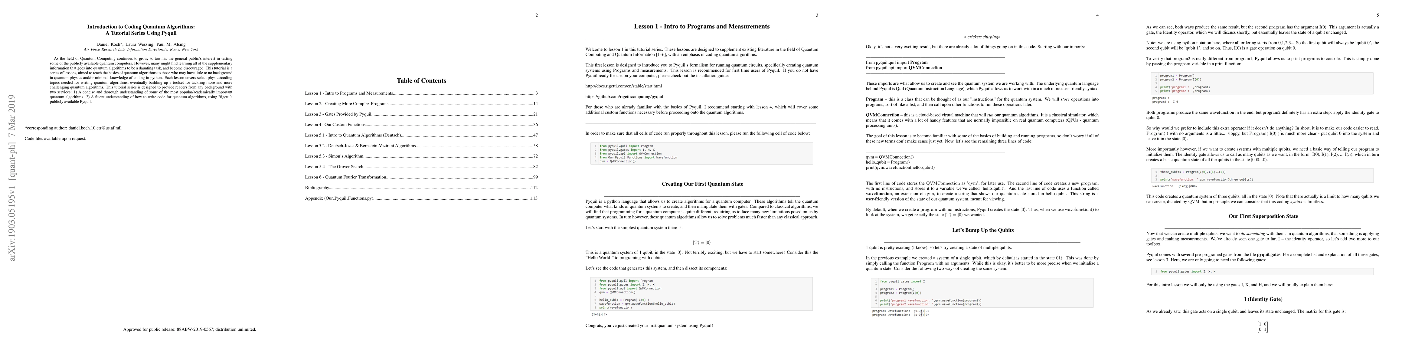 This tutorial series introduces quantum computing basics and quantum algorithms for beginners, using Pyquil to bridge physics and coding. It aims to demystify quantum algorithms and provide readers with both theoretical knowledge and practical coding skills.