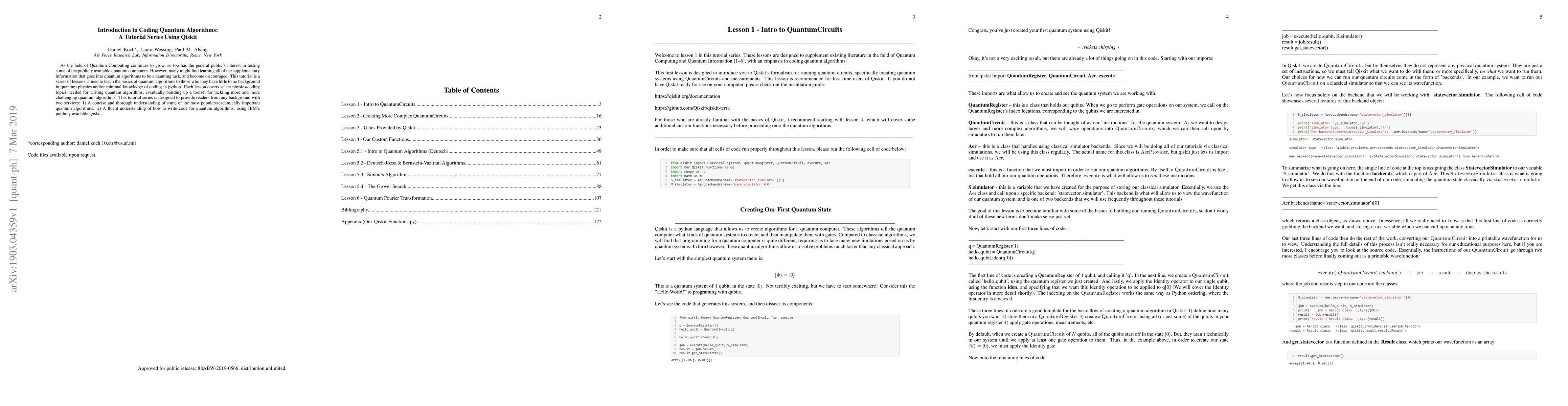 This tutorial series aims to demystify quantum algorithms for beginners by teaching the basics of quantum physics and Python coding, using IBM's Qiskit. It provides a comprehensive understanding of popular quantum algorithms and equips readers with the skills to write their own quantum code.