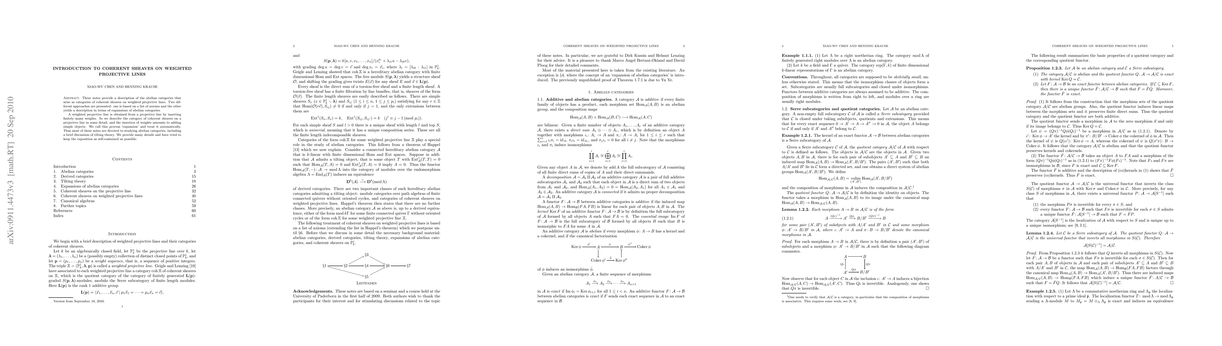 This paper explores abelian categories of coherent sheaves on weighted projective lines, presenting two approaches: axiomatic and expansion-based. It delves into the category of coherent sheaves on projective lines and the process of adding weights, termed "expansion," to form weighted projective lines.