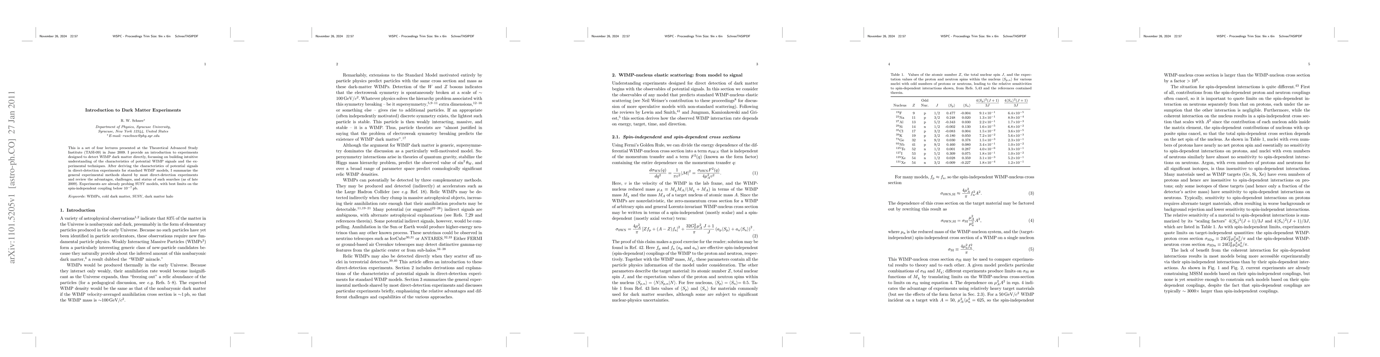 This paper introduces direct-detection experiments for WIMP dark matter, detailing the characteristics of potential signals and shared experimental techniques. It reviews the current status and challenges of these experiments, highlighting the best limits on spin-independent coupling as of late 2009.