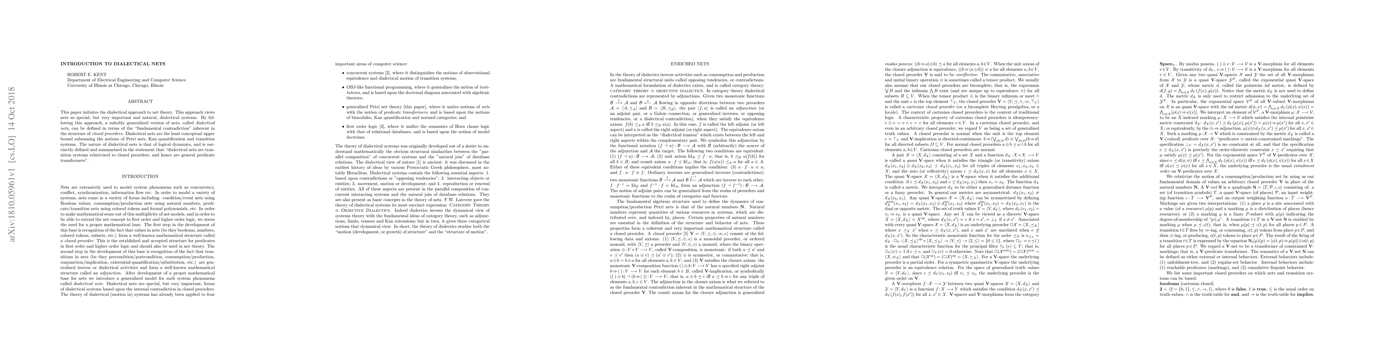 This paper introduces dialectical nets, a generalized version of net theory based on the "fundamental contradiction" in closed preorders, encompassing Petri nets, Kan quantification, and transition systems as special cases. Dialectical nets are defined as transition systems relativized to closed preorders, functioning as general predicate transformers.