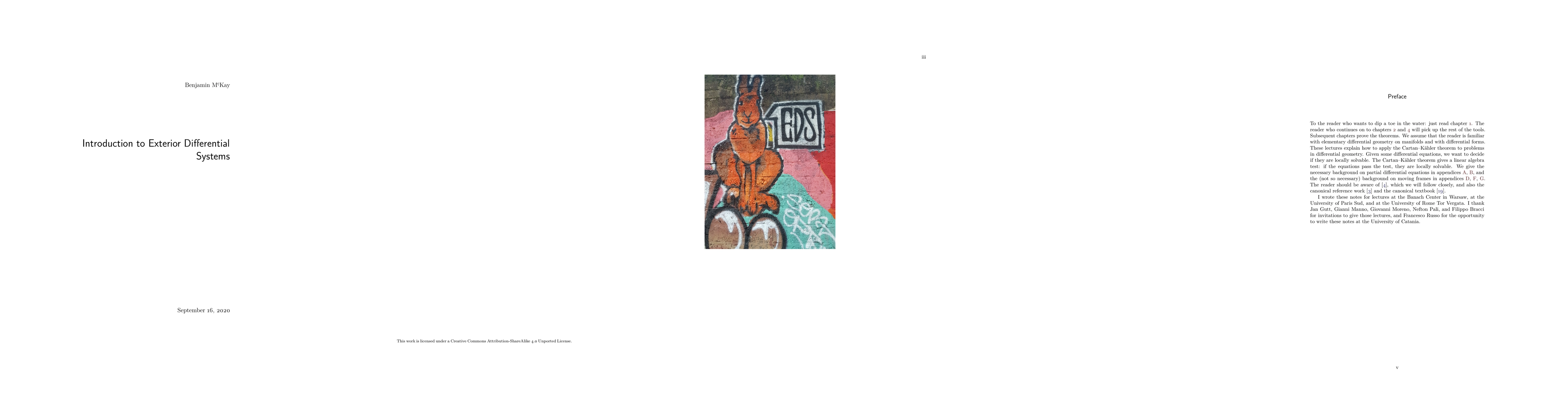 A brief introduction to exterior differential systems for graduate students familiar with manifolds and differential forms. For complete files, see https://github.com/Ben-McKay/introduction-to-exterior-differential-systems