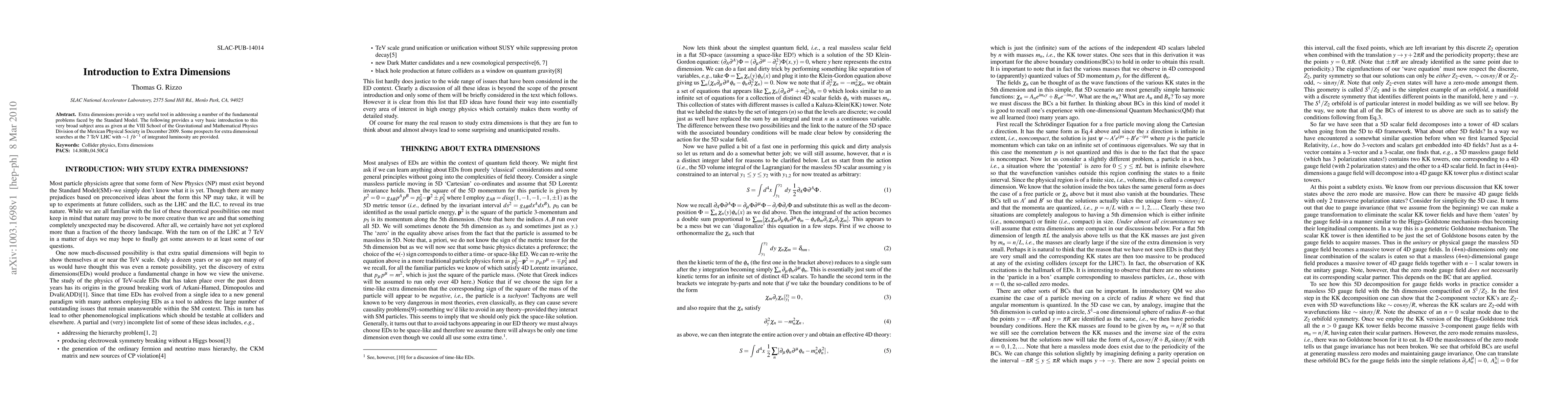 This paper offers a foundational introduction to the concept of extra dimensions, highlighting their potential to resolve issues within the Standard Model, and discusses prospects for detecting these dimensions using the 7 TeV Large Hadron Collider.