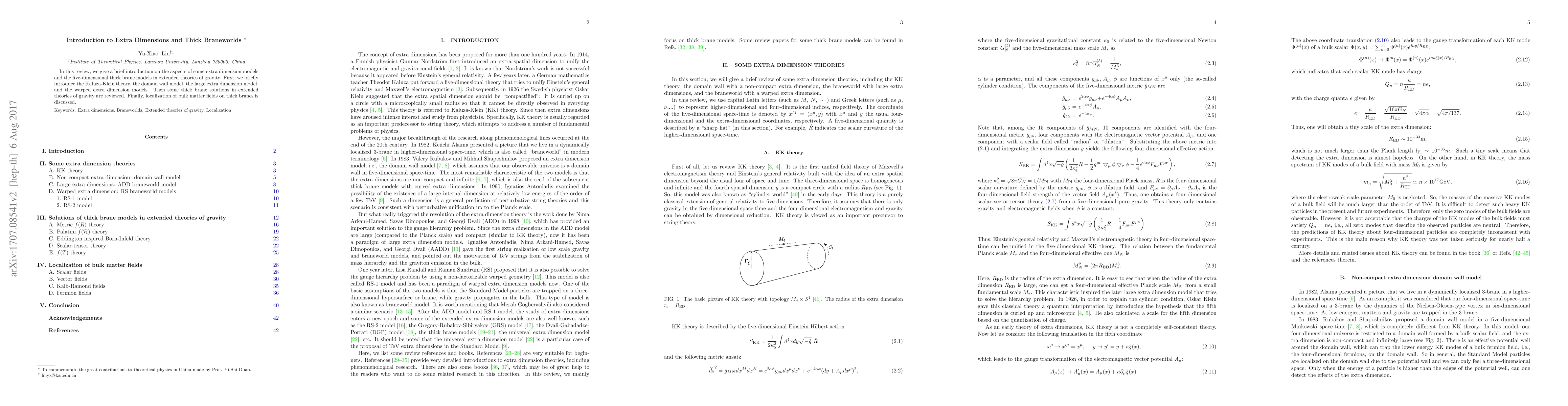 The paper provides a review of various extra dimension models and five-dimensional thick brane models in extended theories of gravity, including Kaluza-Klein theory, domain wall model, large extra dimension model, warped extra dimension models, and thick brane solutions in extended gravity theories.