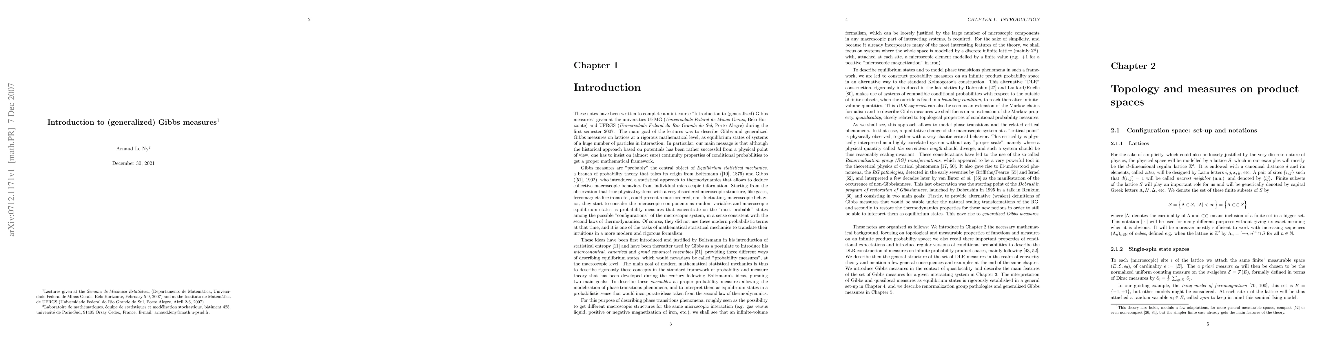 This paper introduces generalized Gibbs measures as a mathematical framework for describing equilibrium states of systems with many particles in interaction. It highlights the importance of continuity properties of conditional probabilities for a proper mathematical approach.