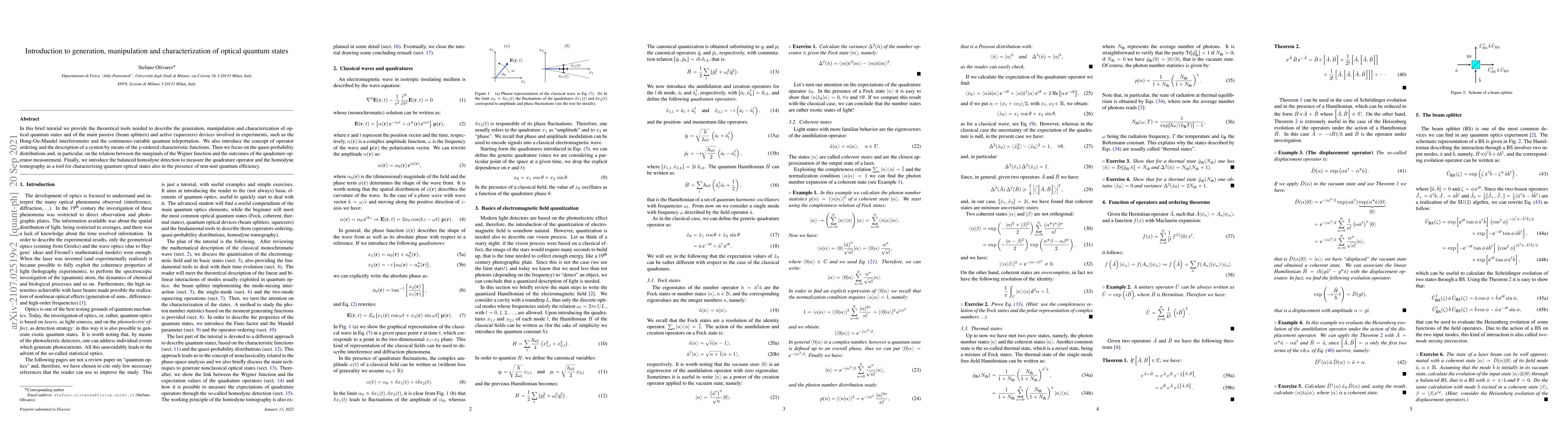 Why do we need quantization to describe vision? What are the quadrature operators of the electromagnetic field? Is it possible to measure them? What are the characteristic functions useful for? In this brief tutorial we provide the theoretical tools needed to describe the generation, manipulation and characterization of optical quantum states and of the main passive (beam splitters) and active (squeezers) devices involved in experiments, such as the Hong-Ou-Mandel interferometer and the continuous-variable quantum teleportation. We also introduce the concept of operator ordering and the description of a system by means of the $p$-ordered characteristic functions. Then we focus on the quasi-probability distributions and, in particular, on the relation between the marginals of the Wigner function and the outcomes of the quadrature operator measurement. Finally, we introduce the balanced homodyne detection to measure the quadrature operator and the homodyne tomography as a tool for characterizing quantum optical states also in the presence of non-unit quantum efficiency.
