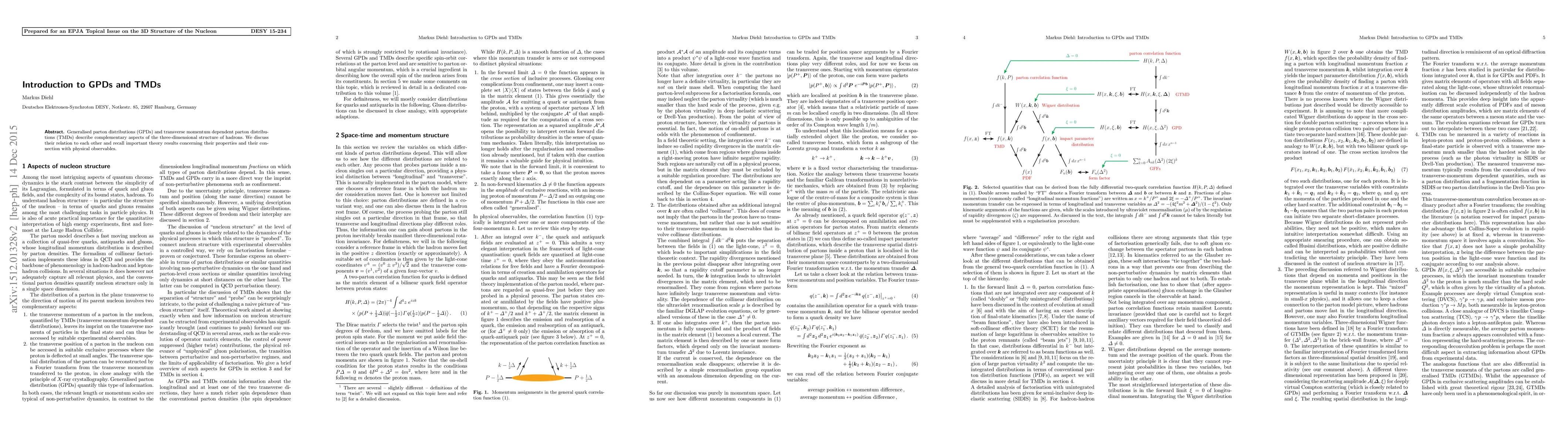 Generalised parton distributions (GPDs) and transverse momentum dependent parton distributions (TMDs) describe complementary aspects of the three-dimensional structure of hadrons. We discuss their relation to each other and recall important theory results concerning their properties and their connection with physical observables.