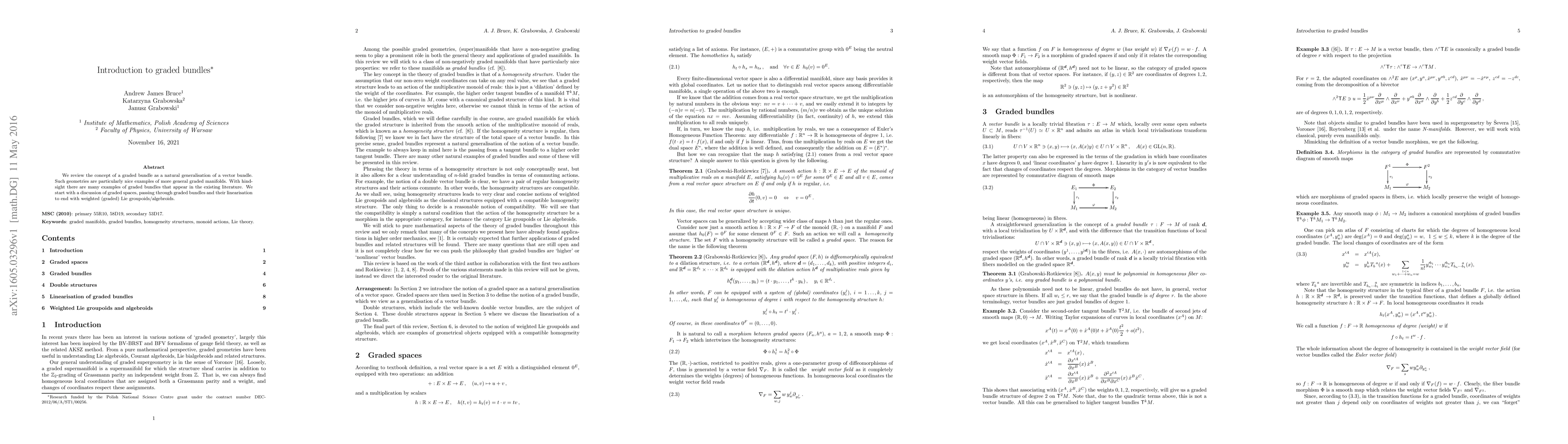 Summary: This paper explores the concept of graded bundles as a generalization of vector bundles, examining their role in graded manifolds. It discusses graded spaces, their linearization, and concludes with an analysis of weighted graded Lie groupoids/algebroids.