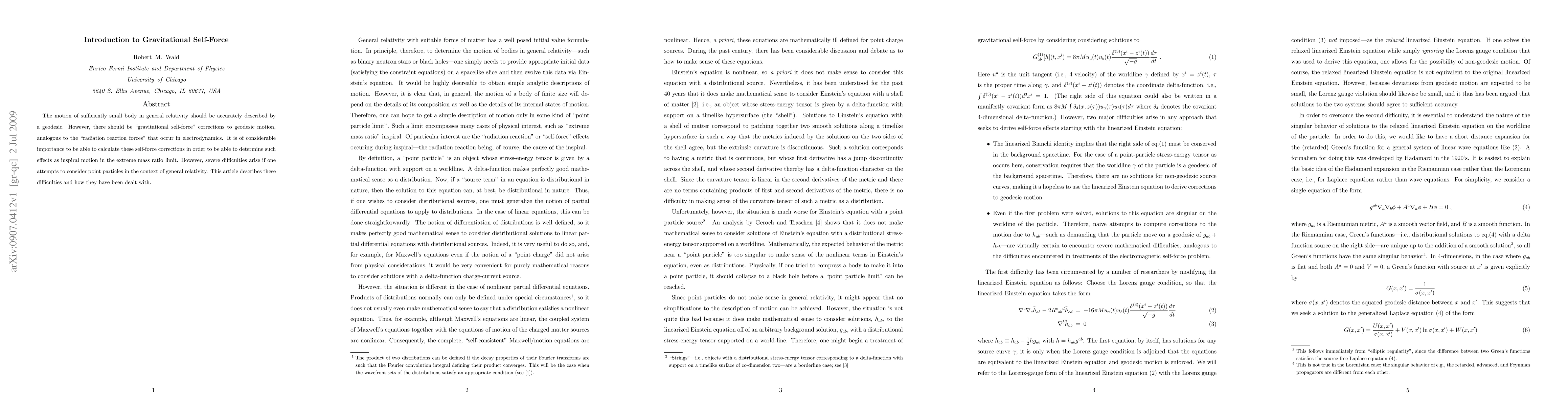 Research paper introduces gravitational self-force corrections to geodesic motion in general relativity, a crucial step towards understanding extreme mass ratio effects like inspiral motion, and discusses challenges and solutions for calculating these corrections.