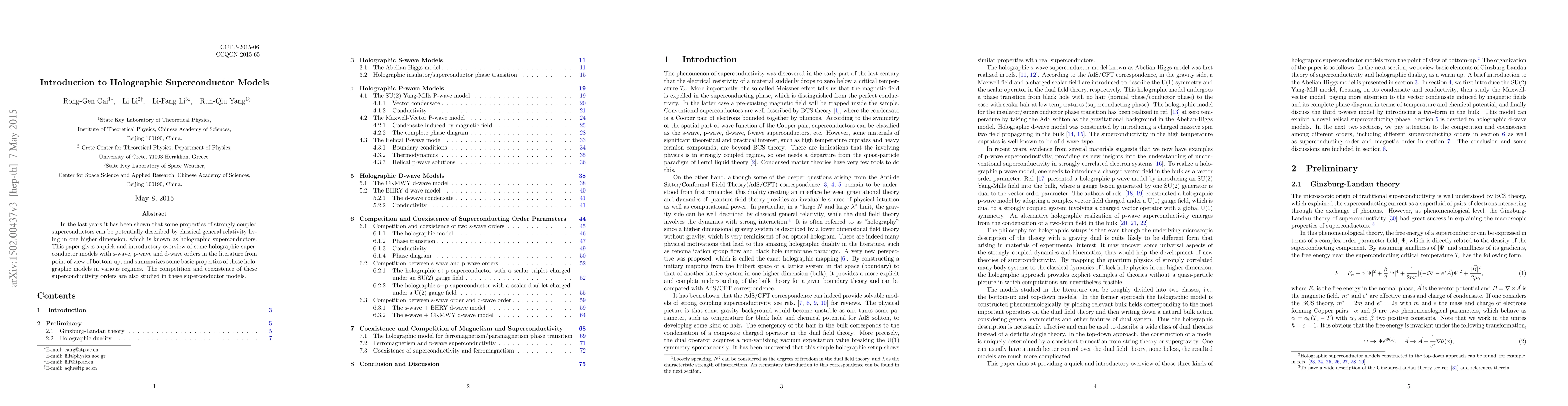 This paper provides an introductory overview of holographic superconductor models, highlighting s-wave, p-wave, and d-wave orders from a bottom-up perspective, and summarizes their basic properties and the competition between these superconductivity orders in various regimes.