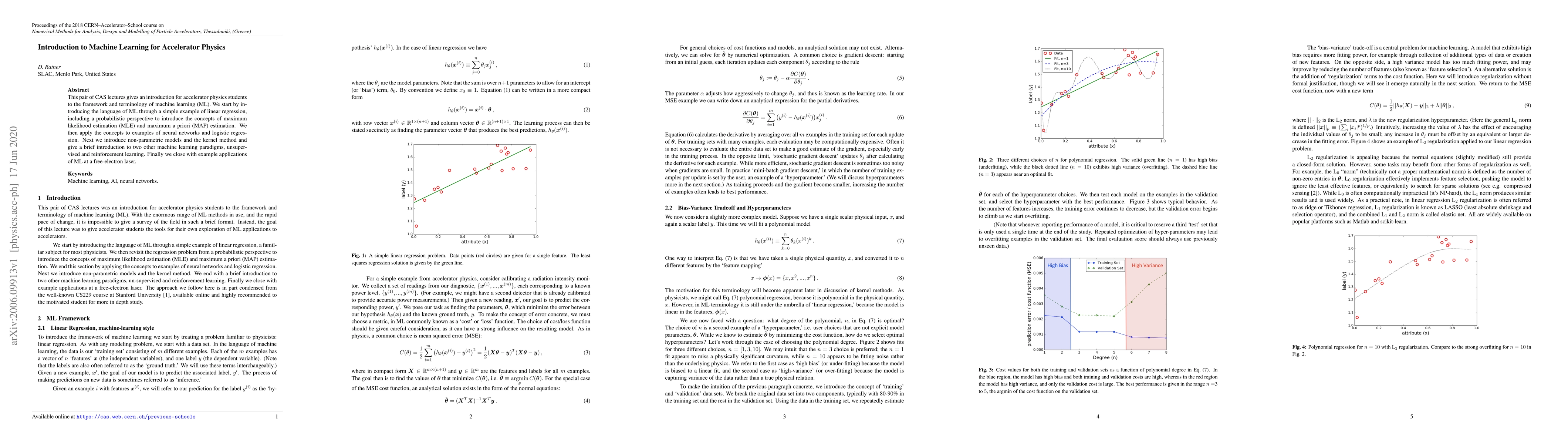 This paper introduces accelerator physics students to machine learning concepts, starting with linear regression and probabilistic estimation, and then covers neural networks, logistic regression, non-parametric models, and briefly touches on unsupervised and reinforcement learning, concluding with applications in free-electron lasers.