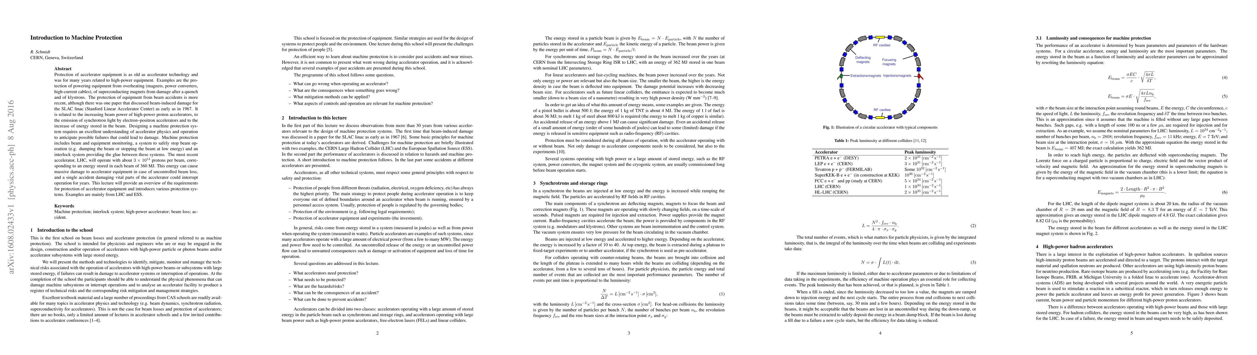 This paper provides an overview of the protection requirements for accelerator equipment, emphasizing the importance of anticipating failures to prevent damage. It discusses the various protection systems, including beam and equipment monitoring, beam dumping, and interlock systems, using examples from the Large Hadron Collider (LHC) and the European Spallation Source (ESS).
