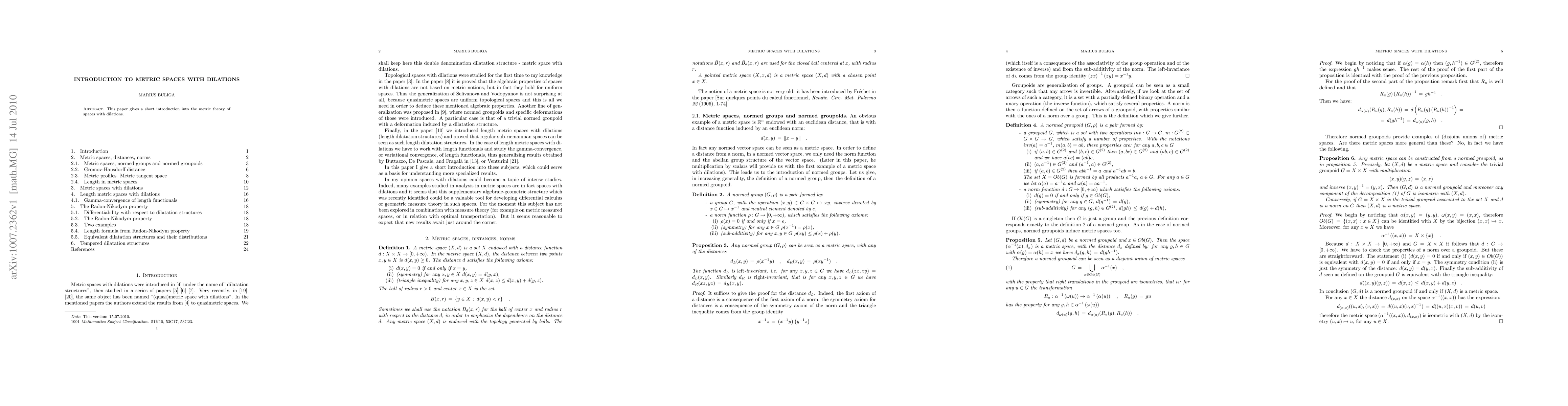This paper introduces metric spaces with dilations, exploring their properties and applications in a concise manner.