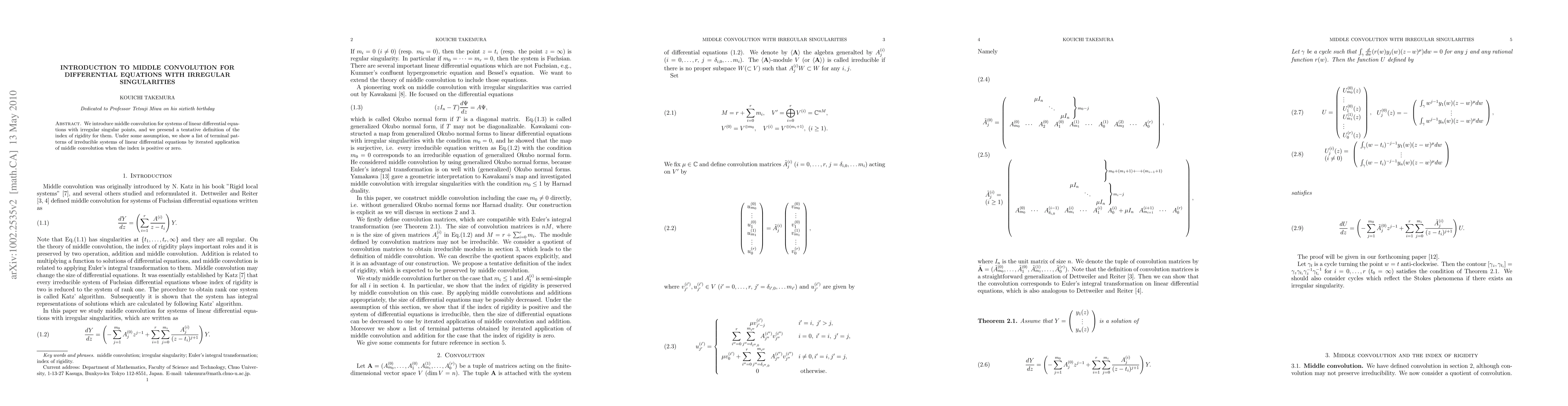 This paper introduces middle convolution for linear differential equations with irregular singular points and proposes a definition for the index of rigidity. It demonstrates terminal patterns for irreducible systems under certain conditions through iterated middle convolution when the index is positive or zero.