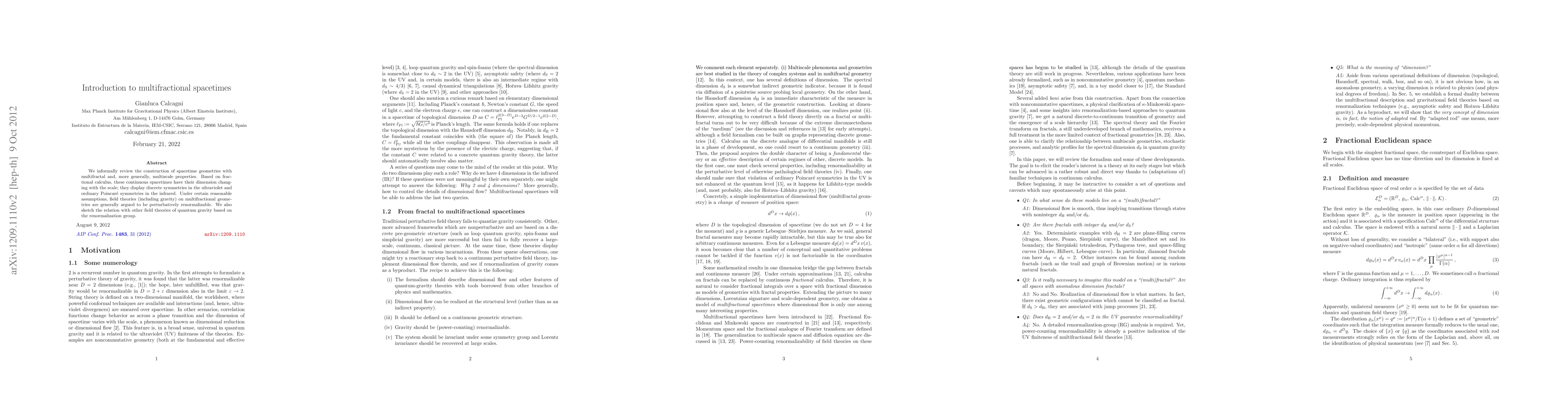 We informally review the construction of spacetime geometries with multifractal and, more generally, multiscale properties. Based on fractional calculus, these continuous spacetimes have their dimension changing with the scale; they display discrete symmetries in the ultraviolet and ordinary Poincar\'e symmetries in the infrared. Under certain reasonable assumptions, field theories (including gravity) on multifractional geometries are generally argued to be perturbatively renormalizable. We also sketch the relation with other field theories of quantum gravity based on the renormalization group.