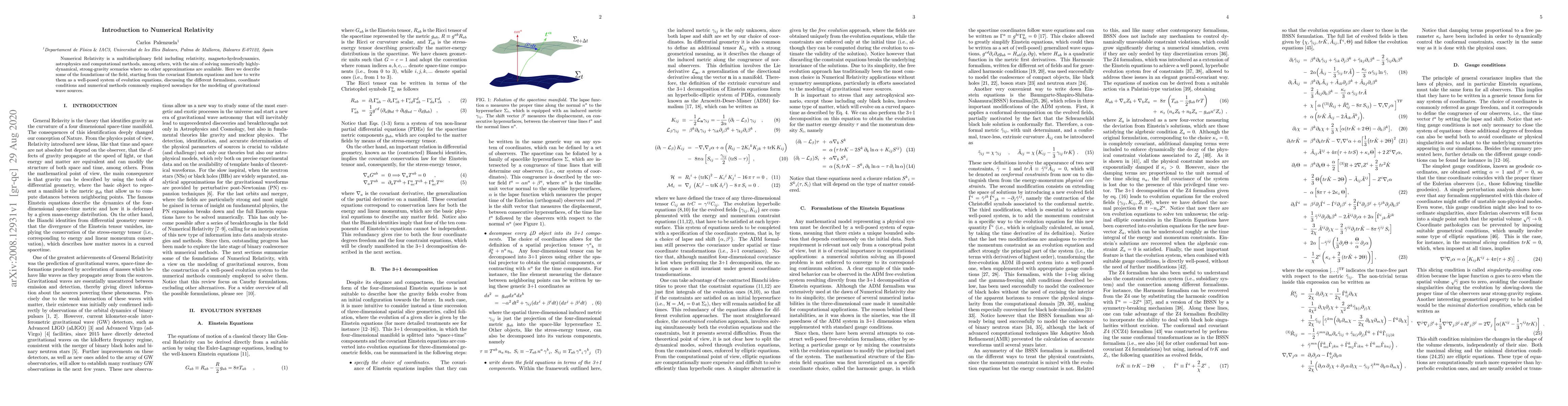 This paper introduces Numerical Relativity, detailing the foundations of solving highly-dynamical, strong-gravity scenarios using numerical methods. It covers the covariant Einstein equations, evolution equations, and various formalisms, coordinate conditions, and numerical techniques used in modeling gravitational wave sources.
