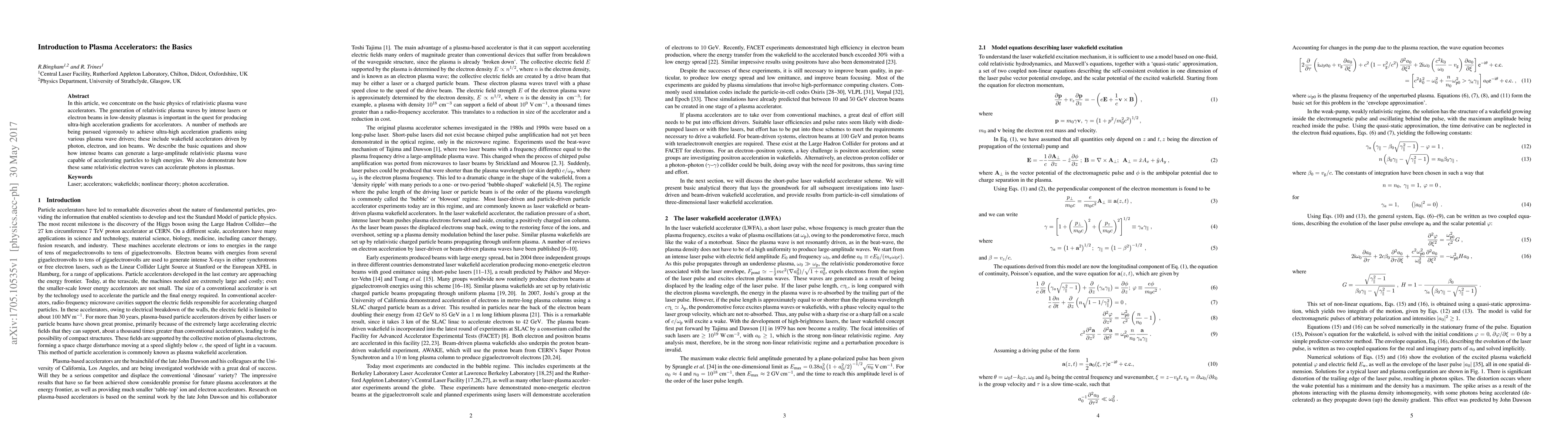 This paper introduces the fundamental physics of relativistic plasma wave accelerators, focusing on the generation of high-amplitude plasma waves by intense laser or electron beams. It discusses various methods for achieving ultra-high acceleration gradients and demonstrates how these waves can accelerate particles and photons to high energies.